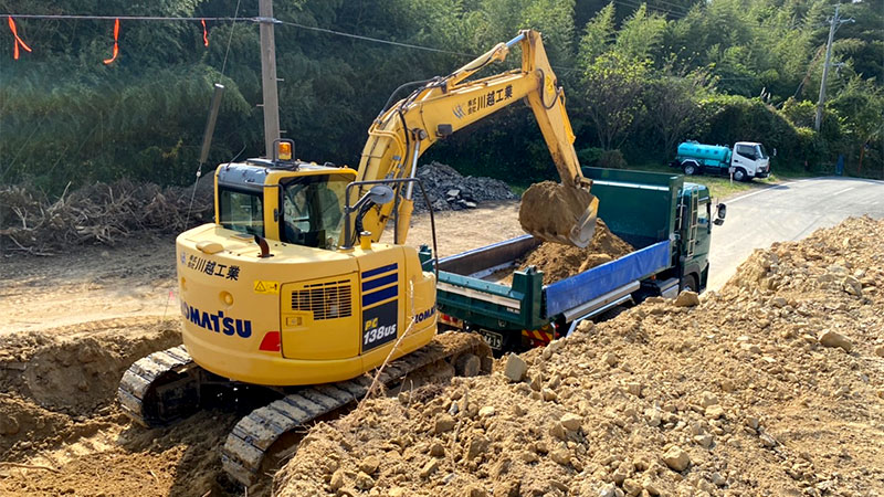 利便性向上の為、新しい道路を作ったり、大雨の影響で起こる水害や氾濫を防ぐための河川工事、災害を受けた箇所の復旧工事など様々な場面で活躍しております。